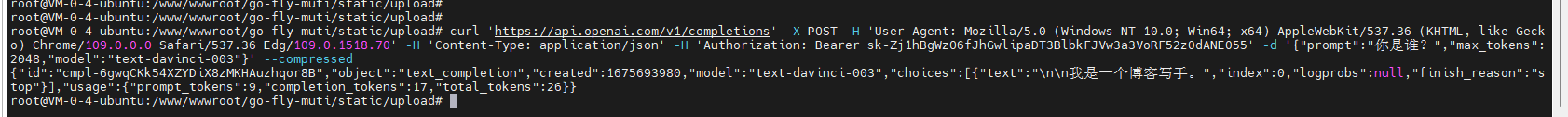 -d '{“prompt”:“你是谁?”,“max_tokens”:2048,“model”:“text-davinci-003”}'