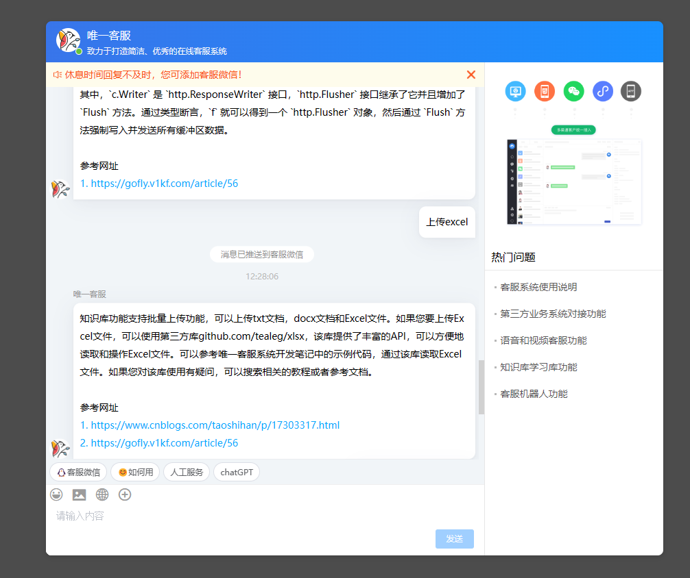 基于ChatGPT的文档知识库AI客服系统-支持上传网址/文本/docx/excel等数据